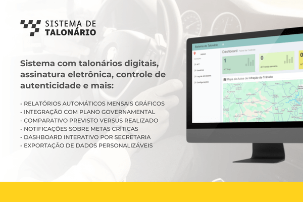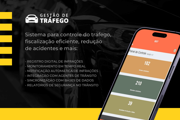 Controle de infrações, talonários, rotas e dados de trânsito para mais segurança e eficiência viária.